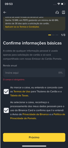 Étape par étape pour demander la carte Binance