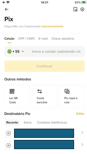 Autres services intégrés : En plus du Pix, Binance Pay permet également de recharger des téléphones, d'envoyer plusieurs paiements et bien plus encore.