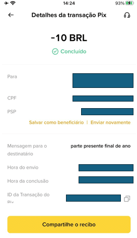 Cette étape est importante pour confirmer que vous envoyez à la bonne personne. Tout est très similaire à un Pix traditionnel, avec la différence que le montant sera débité de votre portefeuille crypto.