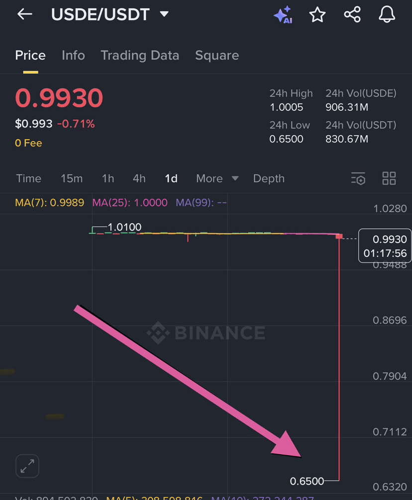 Selon BlockBeats, le stablecoin USDE a rencontré un dépeg sévère, actuellement évalué à 0,6666 $. Cela marque un déclin de plus de 34 % au cours des dernières 24 heures.
