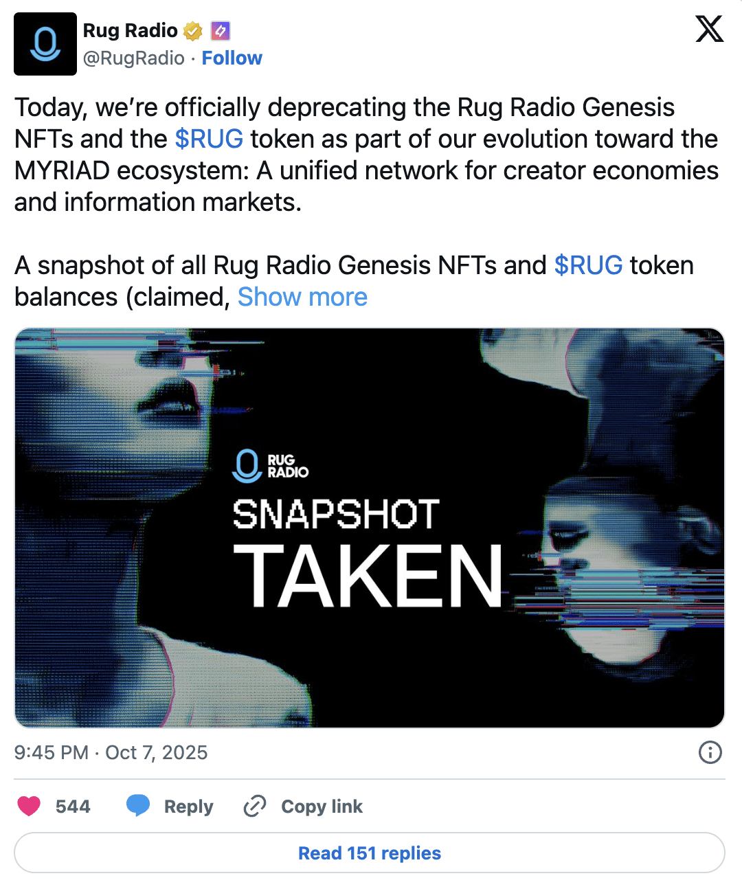 Rug Radio commence à abandonner les NFT Genesis et les jetons RUG