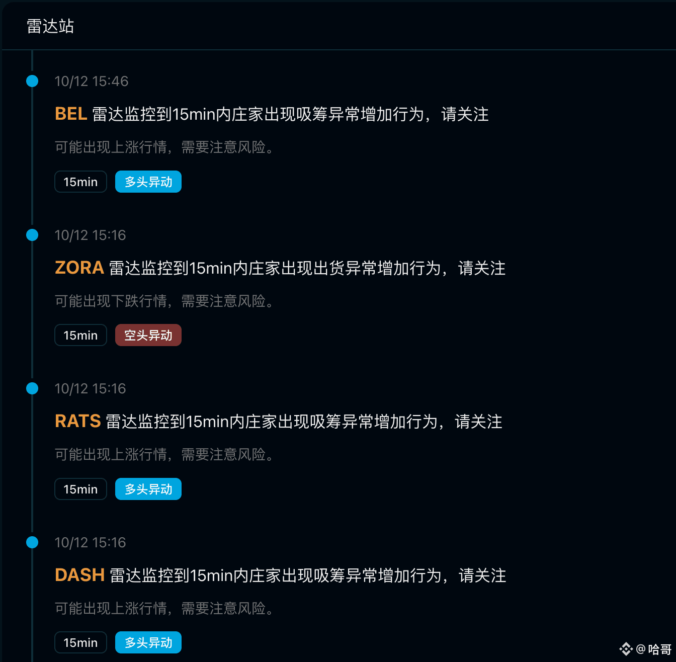 我自己把他叫做雷达站。每天监控大资金流向,用算法清洗数据、锁定庄家痕迹。大币跟机构,小币跟项目方,雷达一响,黄金万两!