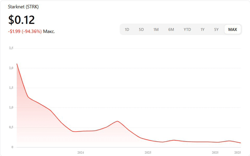 Depuis son lancement, le jeton STRK a connu une chute massive de 95 % par rapport à son sommet.