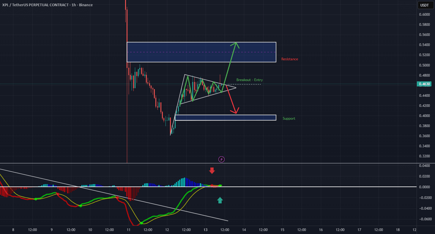 ✅ Scénario haussier : Fracture et clôture au-dessus → zone de résistance cible 0,50 $+