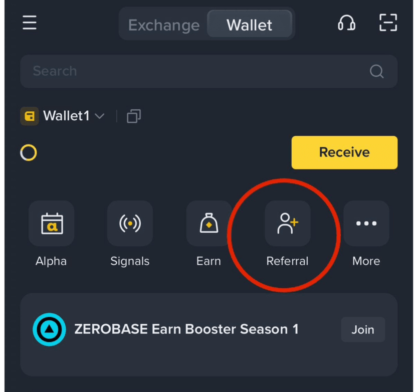Parallèlement à Meme Rush, Binance lance un programme d'invitation (Referral) sur Binance Wallet (Web) :