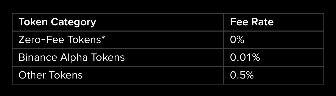 Binance Alpha Tokens 0,01 % Appliqué aux jetons intégrés à Binance Alpha