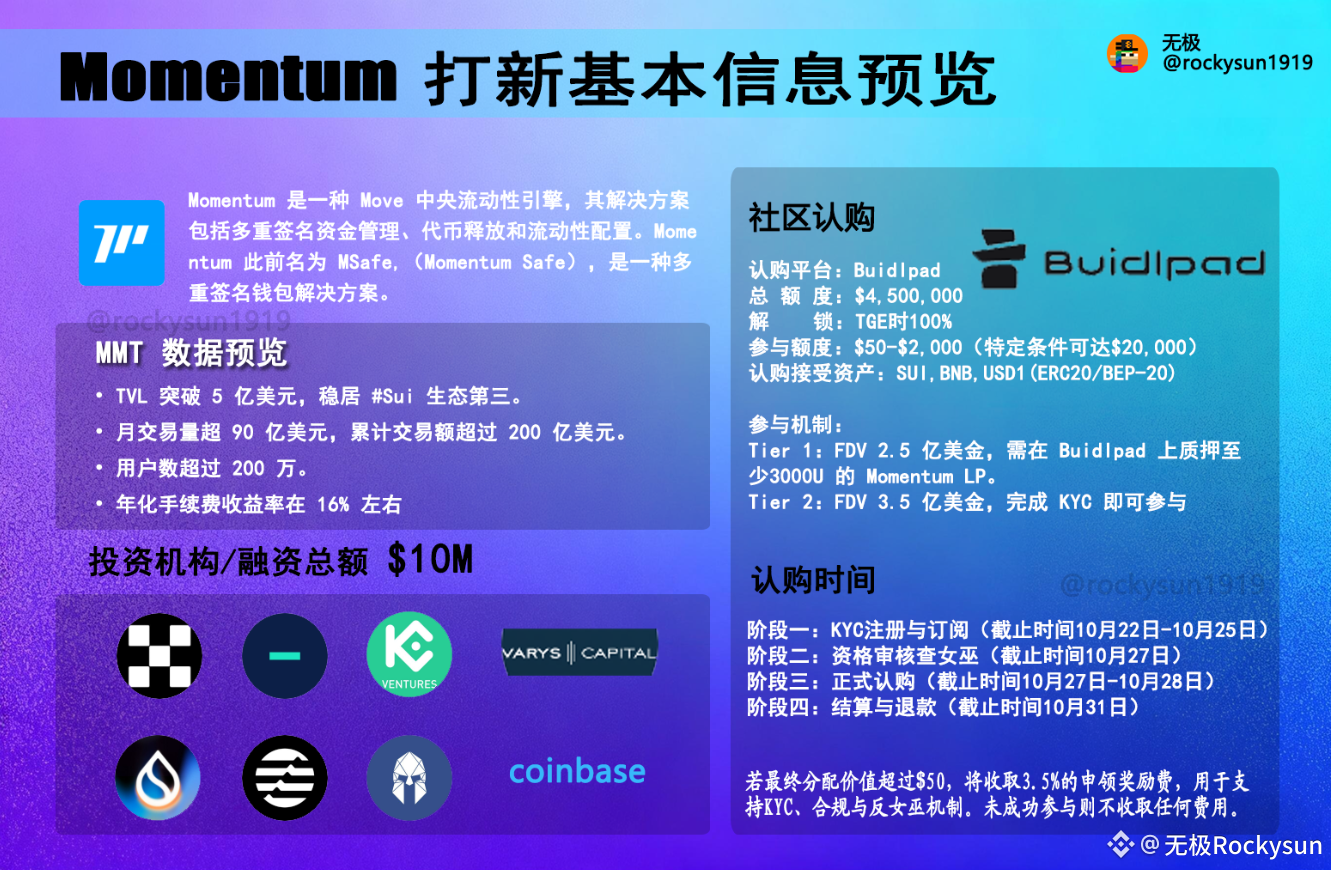 Momentum $MMT 此次在 #Buidlpad @buidlpad 上的打新等同于@buidlpad是 $MMT 的官方社区发行平台,已经不是打不打的问题,而是能不能打上的问题,在当前市场环境下,像 $MMT 这样具备实际数据支撑、生态资源与创新机制的项目并不多见。无论是短期参与打新,还是长期关注其生态发展,MMT 都值得纳入你的观察清单