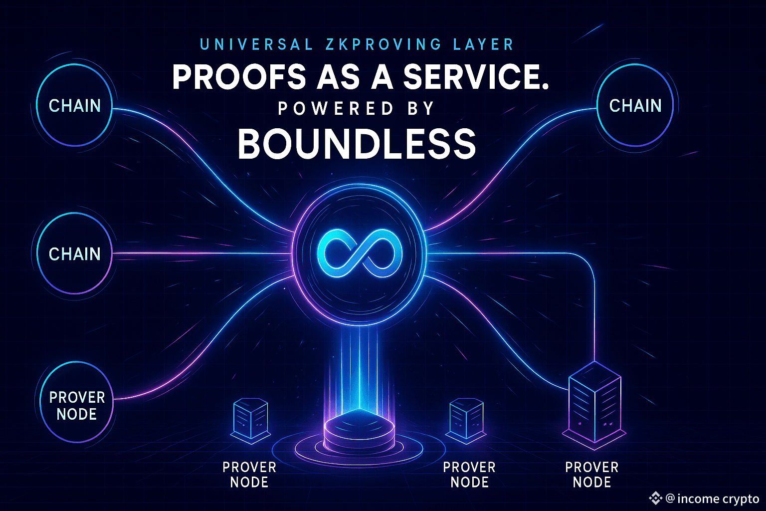 Boundless (ZKC) मूल रूप से एक universal zero-knowledge proving layer है, जिसका मकसद है कि किसी chain को खुद की proving infrastructure न बनानी पड़े। वो developers को एक marketplace देती है जहां proof requests भेजे जाते हैं और prover nodes compete करके proofs generate करते हैं।