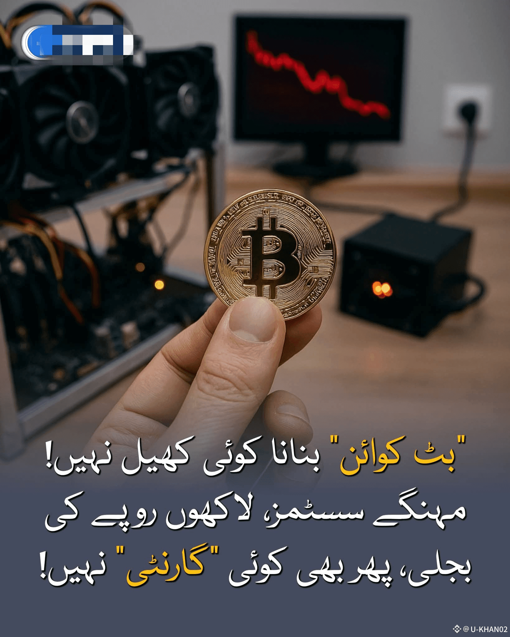 خطرات بجلی کی کمی، مشین خراب ہونا، BTC قیمت گرنا، ابتدائی 6-12 مہینے نقصان ممکن۔