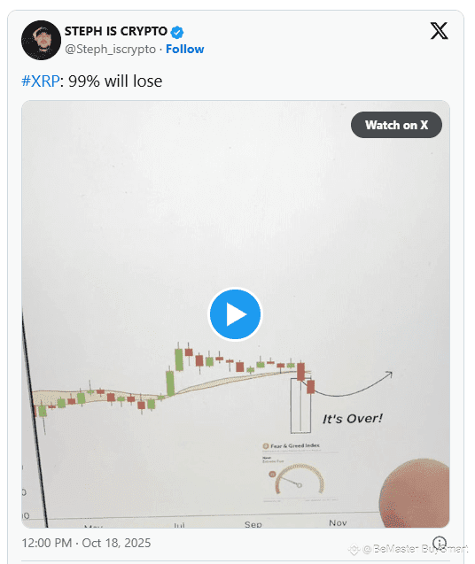 Dans une analyse récente partagée sur X, StephIsCrypto a mis en évidence quelques indicateurs techniques clés : l'apparition d'une grande bougie de liquidation sur le graphique hebdomadaire et une peur palpable chez les investisseurs. Il est intriguant de noter que le stratège indique que ces signaux exacts étaient présents juste avant la montée historique de XRP il y a huit ans.