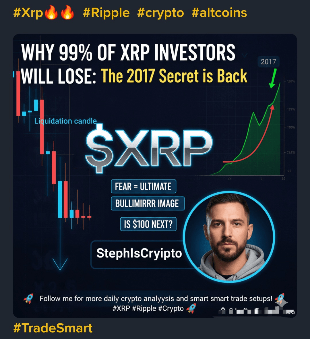L'expert en crypto StephIsCrypto vient de publier une grande mise à jour — le $XRP chart ressemble exactement à ce qu'il était avant le bull run de 2017 ! 😱