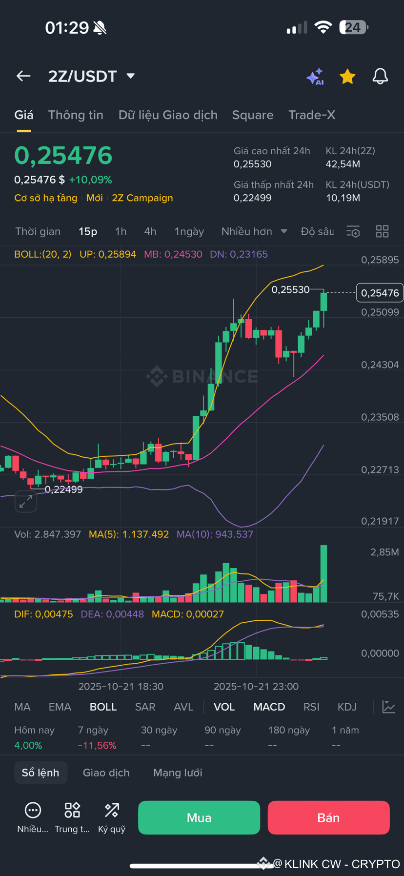 thị trường lúc này #klink vẫn Long và mình nghĩ với tổng cung 10B và đang lưu hành 3,47B tương ứng 34,7% thì 2Z có thể tăng trưởng lên 0,3 là điều hoàn toàn có thể.