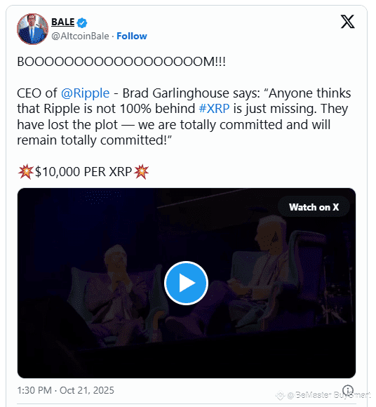 $XRP Le PDG de Ripple, Brad Garlinghouse, a réaffirmé l'engagement total de la société envers XRP, soulignant que Ripple reste entiÚrement aligné avec le succÚs à long terme de l'actif numérique.