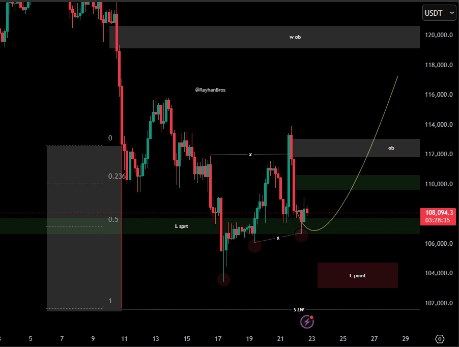 Tant que Bitcoin reste au-dessus de 106,5K $ sur les graphiques quotidiens et 4H, il reste haussier.