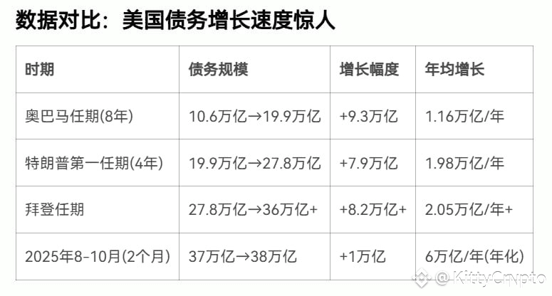 尤其是最近几任总统,那更是“比着花钱”:奥巴马干8年,债务从10.6万亿涨到19.9万亿,翻了快一倍;特朗普4年任期,直接加了7.8万亿,干到27.8万亿;到拜登卸任,直接冲过36万亿!这哪是“借钱过日子”,这是把全球当提款机,往死里霍霍啊!