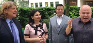 Greenwood (en costume gris), co-fondateur de OneCoin avec Ruja Ignatova (robe rose), a été condamné à vingt ans de prison en septembre 2023.