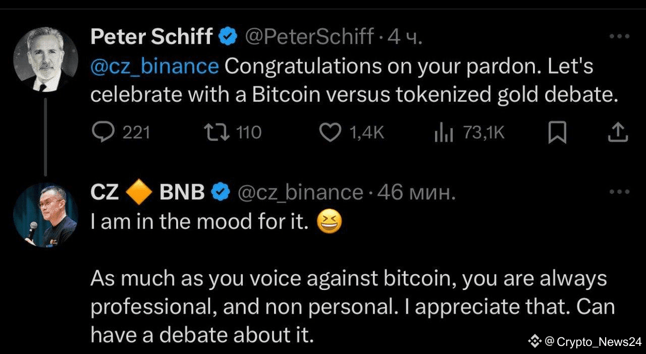 CZ accepted Peter Schiff's challenge to a debate on $BTC and tokenized