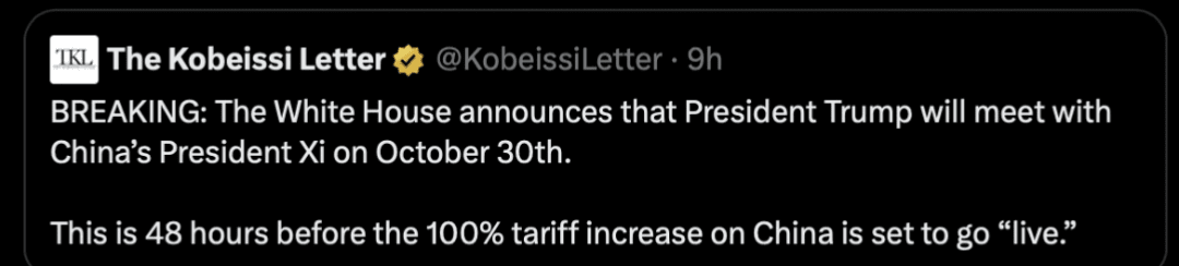 La réponse de Trump ? … des droits de douane de 100 % sur plus de 500 milliards de dollars de marchandises chinoises. Entrée en vigueur le 1er novembre. Le jour suivant leur rencontre.
