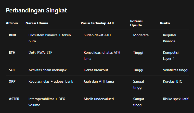 Cet article discutera en profondeur de cinq altcoins majeurs qui sont déjà listés sur Binance et qui ont le potentiel de dépasser leur ATH en octobre 2025. Les cinq altcoins sont BNB, Ethereum (ETH), Solana (SOL), XRP, et Aster. Nous examinerons les raisons derrière le potentiel de hausse de chacun, les facteurs fondamentaux et techniques, ainsi que les risques à prendre en compte par les investisseurs, en particulier pour les utilisateurs en Indonésie.