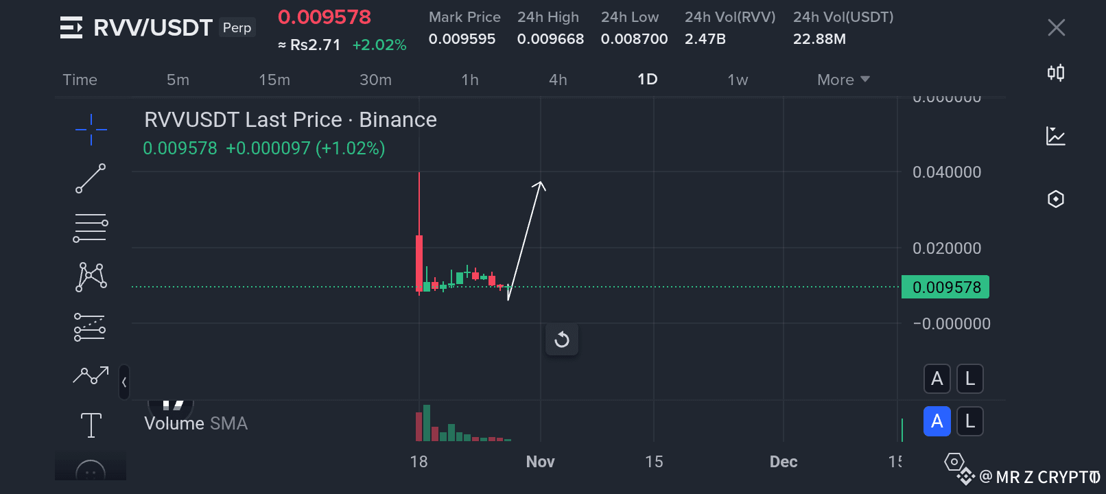 RVV has been trading quietly after a sharp drop and an equally sharp recovery candle — a classic volatility setup that often leads to explosive moves once volume kicks in again. The current candle structure shows that support is holding well, and volume has started to stabilize, signaling the market could be preparing for a shift.