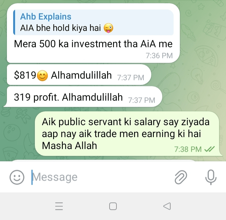 Quelques amis tradent avec moi sous mon mentorat. Hier, je leur ai dit d'acheter $AIA et aujourd'hui, ils l'ont clôturé avec un bénéfice de 100%+. (Vous pouvez voir la capture d'écran.🤑