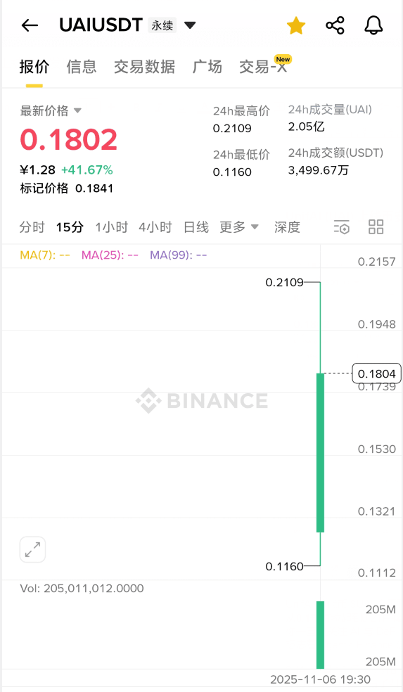 Le jeton d'UnifAI $UAI a été officiellement lancé aujourd'hui sur Binance Alpha et les contrats Binance, avec une performance encore plus forte que ce que j'avais prévu, passant de 0.1 à 0.21, doublant directement. De plus, UAI a également été lancé simultanément sur des échanges de premier plan comme Gate et Bitget. Si vous suivez depuis longtemps le croisement de l'IA et de la DeFi, vous devriez réaliser que ce n'est pas simplement un événement de lancement ordinaire — — cela marque enfin l'émergence d'un produit capable et durable dans ce domaine spécifique qu'est la Finance Agentic.