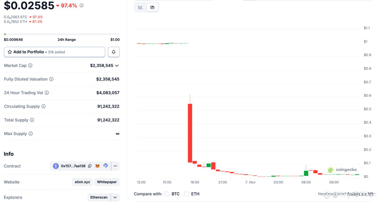 Один із останніх шок-кейсов у світі DeFi: стейблкоїн deUSD, емітований Elixir Network, втратив майже всю прив’язку до долара після того, як його основний кредитор, Stream Finance, зазнав збитків приблизно $93 млн.