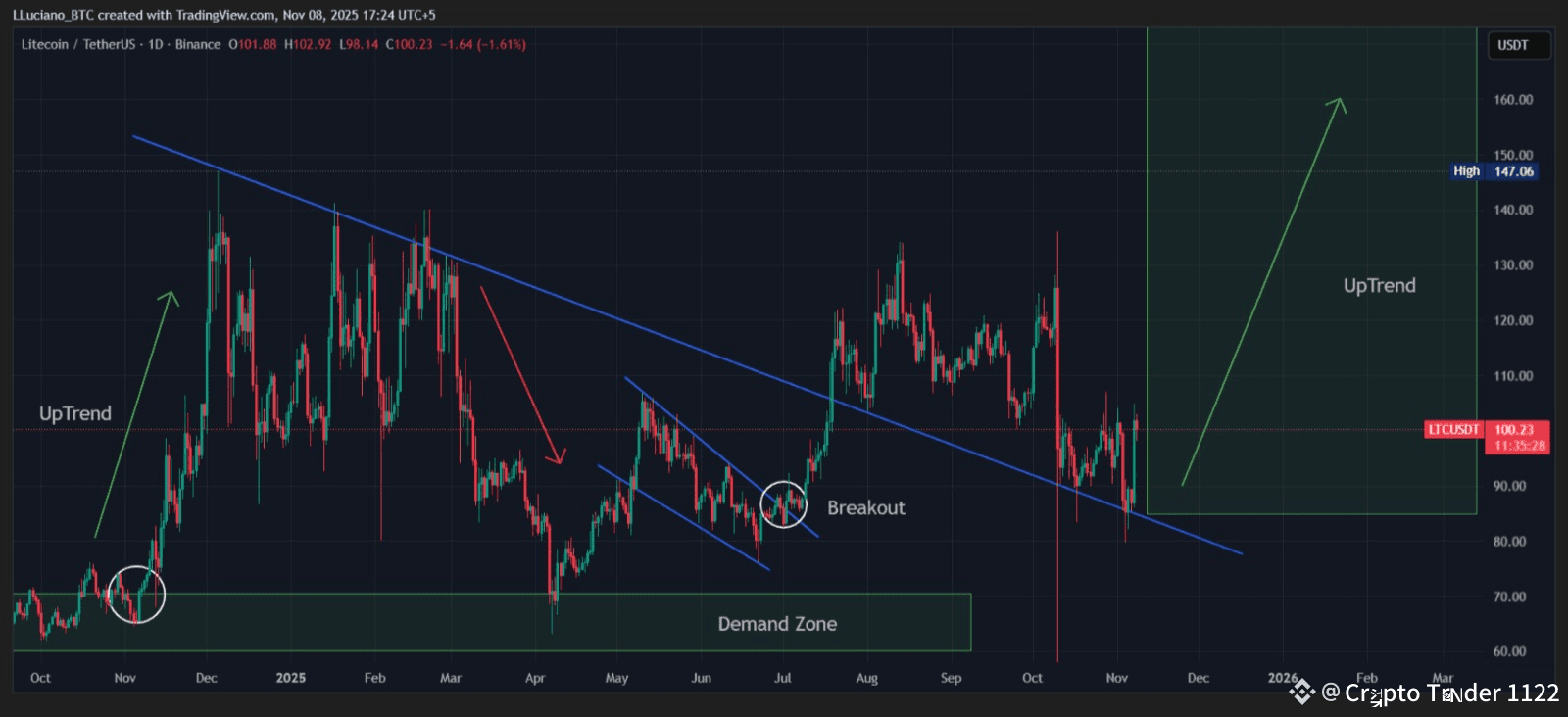 Litecoin ($LTC ), one of the oldest and most reliable cryptocurrencies in the market, appears to be setting up for a strong bullish reversal after months of consolidation and downward pressure. The latest technical setup suggests a potential uptrend resumption, with traders eyeing higher price levels into early 2026.