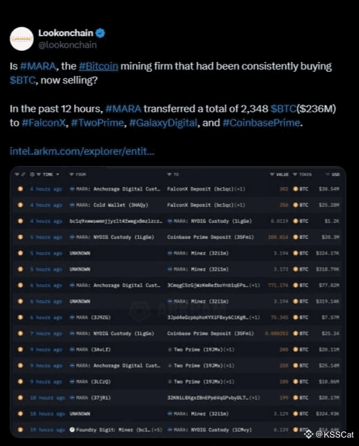 MARA в целом перевела 2 348 BTC ($236 млн) FalconX, TwoPrime, GalaxyDigital и Coinbase Prime.