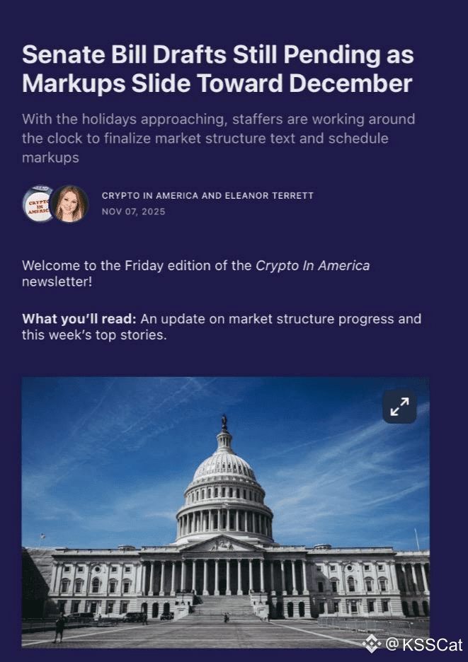 Сенат США все еще разрабатывает две версии законопроекта о структуре крипторынка, и запланированное заседание по внесению поправок перед Днем благодарения может быть отложено до декабря.
