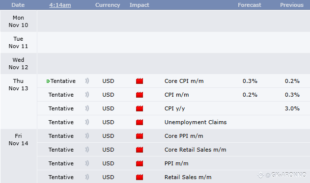 This week is all about inflation + politics. Markets are bracing for a double-header: CPI on Thursday and PPI + Retail Sales on Friday, a full read on inflation and consumer strength. These prints will set the tone for risk assets into year-end.