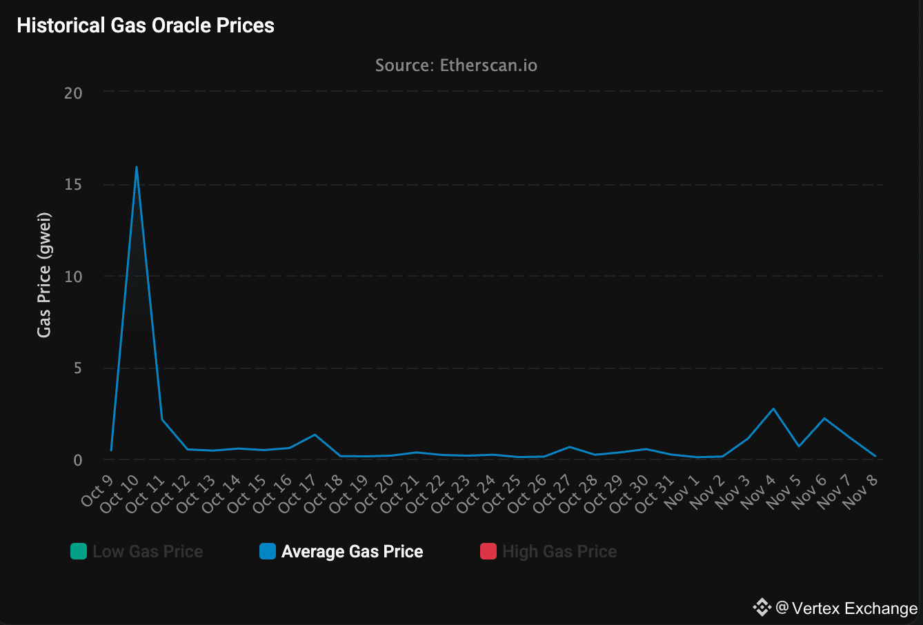 Las tarifas de gas en la blockchain de capa 1 de Ethereum cayeron a solo 0,067 Gwei el domingo, en medio de una pausa en los mercados de criptomonedas provocada por la histórica caída del mercado en octubre. El precio medio por ejecutar un swap en Ethereum es de solo USD 0,11, las ventas de tokens no fungibles (NFT) conllevan una tarifa de USD 0,19, conectar un activo digital a otra red blockchain costará a los usuarios USD 0,04 y los préstamos onchain cuestan USD 0,09 en el momento de escribir este artículo, según Etherscan. Las tarifas de transacción de la red Ethereum alcanzaron un máximo reciente de 15,9 Gwei el 10 de octubre, el día de la caída repentina del mercado que provocó que algunas altcoins perdieran más del 90% de su valor en 24 horas. Sin embargo, el 12 de octubre, las tarifas volvieron a bajar a solo 0,5 Gwei y se mantuvieron en su mayoría muy por debajo de 1 durante octubre y noviembre.