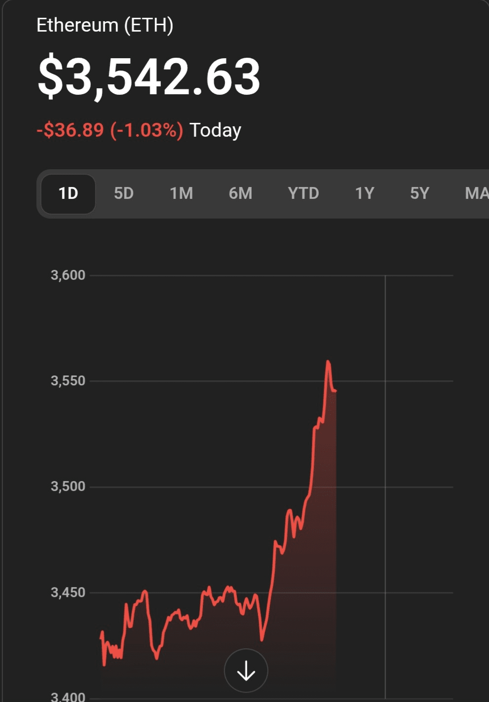 #ETH Ethereum (ETH) est à environ 3 558 $ US, en hausse modeste (~+1,8%) au cours des dernières 24 heures.