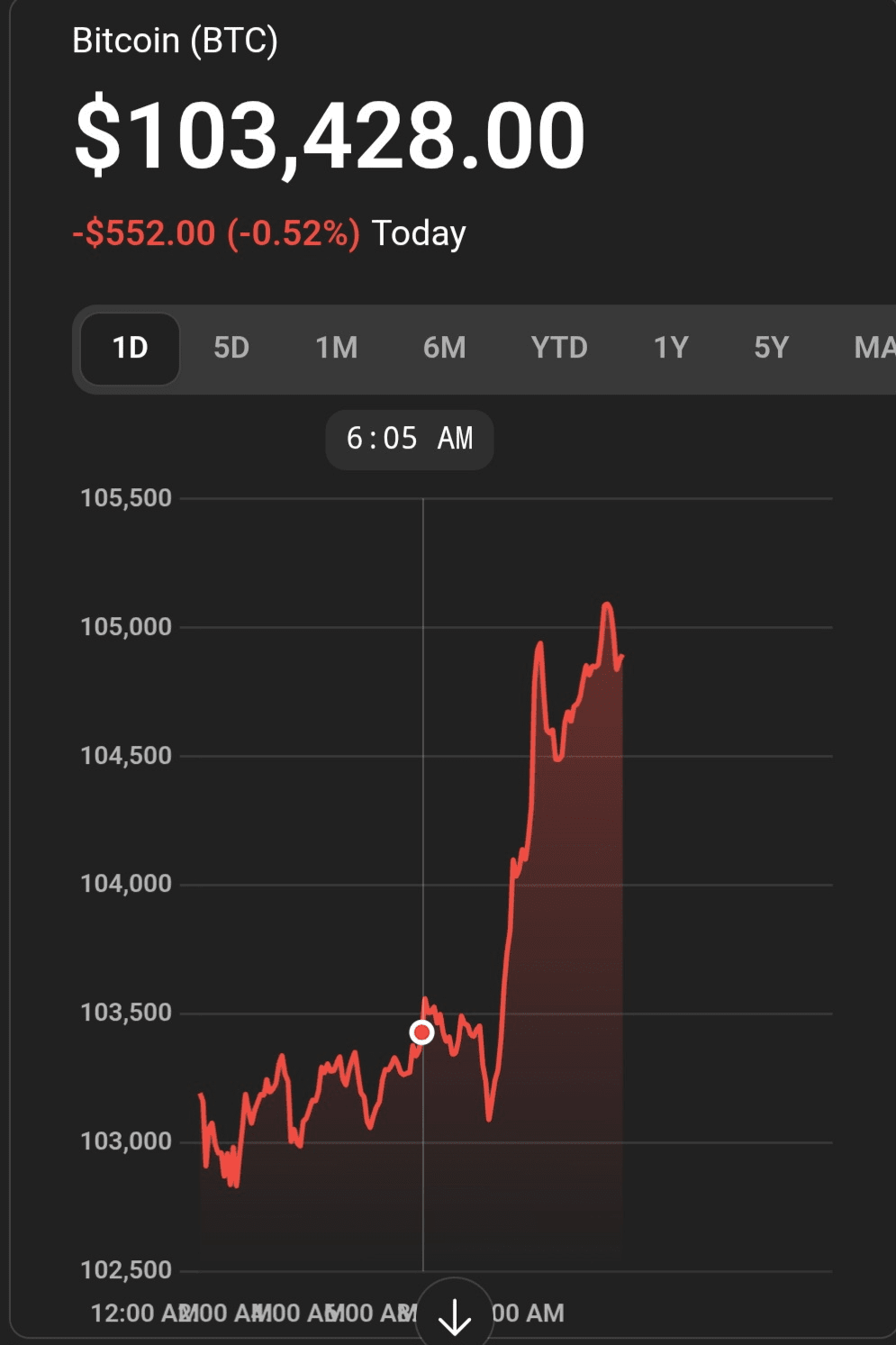 #Bitcoin❗ (BTC) se négocie autour de 104 893 $ US, essentiellement stable (~-0,4%) au cours des dernières 24 heures.