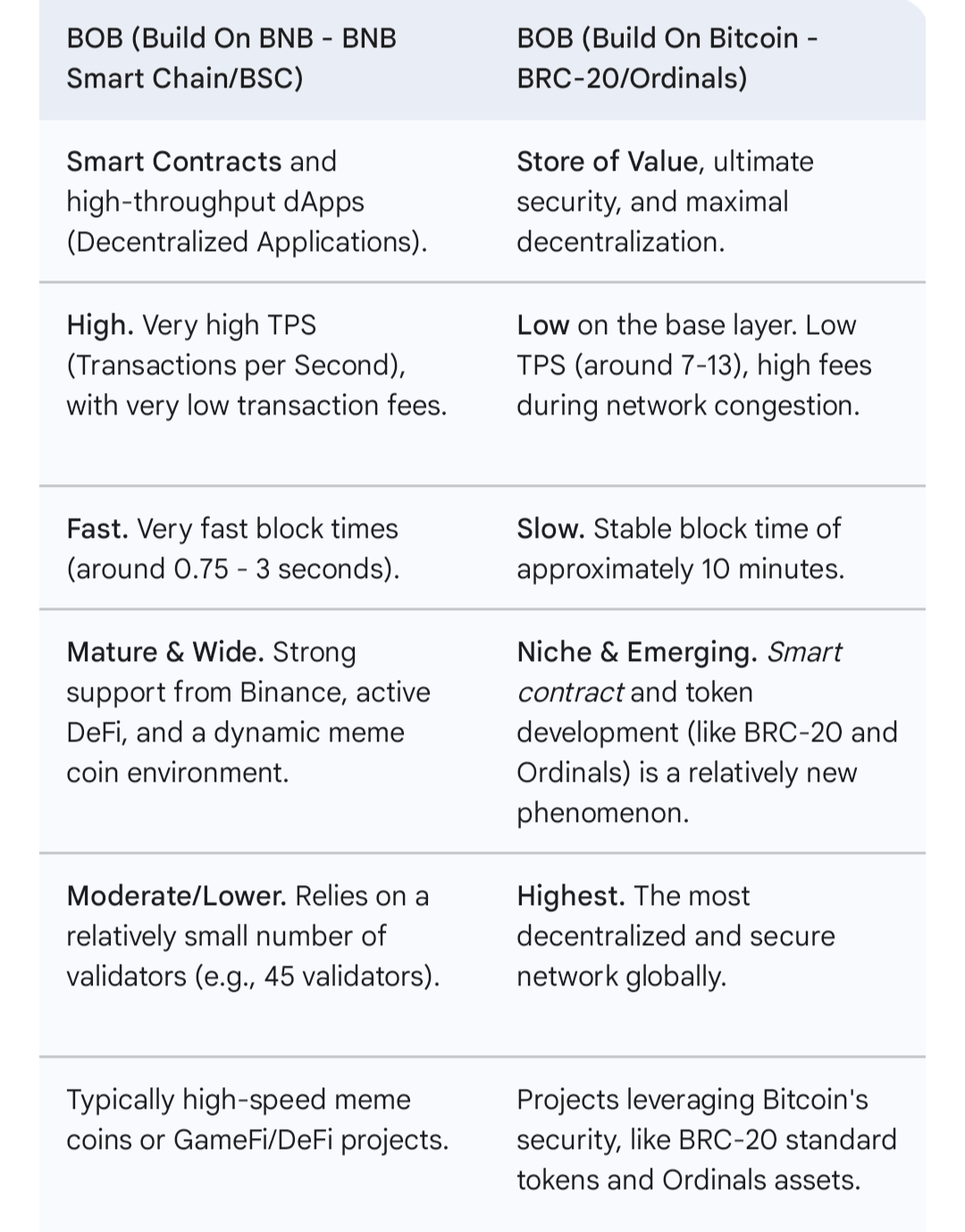 * Court Terme (Gains Rapides/Haute Volatilité) : BOB (Build On BNB) a probablement un potentiel de montée plus rapide en raison de l'infrastructure de trading à faible coût et à grande vitesse sur BSC.