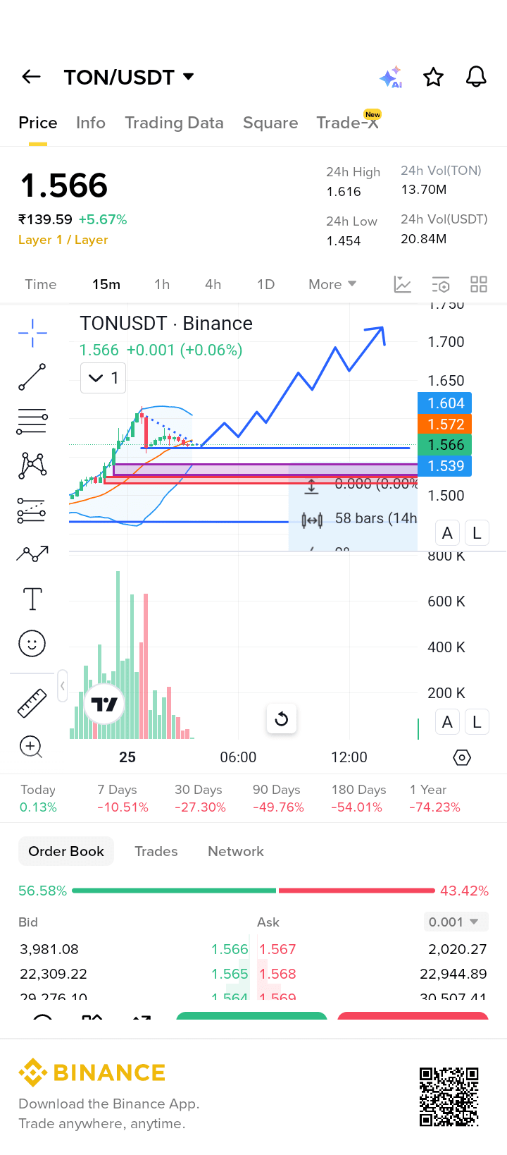 Lorsque plus d'offre est débloquée et que plus de volume de trading arrive, TON peut fortement rebondir vers le haut — encore et encore.