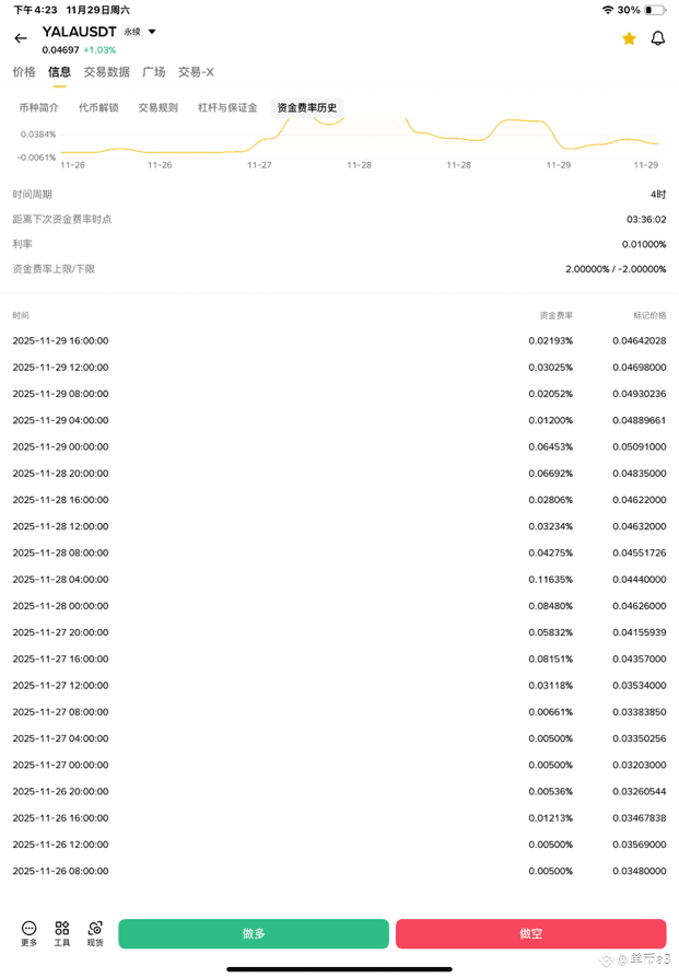 • 数据解读: 费率历史显示,资金费率长期维持正值,且出现过 0.116% 这种极端高位。