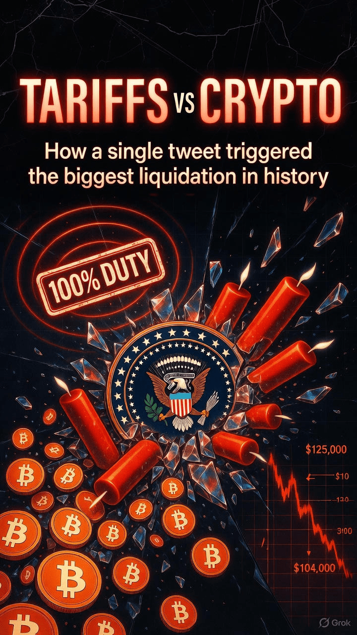 L'événement le plus extrême s'est produit le 10 octobre 2025, lorsque la menace d'un tarif de 100 % sur les importations chinoises a déclenché la plus grande liquidation de l'histoire du crypto — 19,13 milliards de dollars ont été perdus, incluant des appels de marge en cascade sur les positions à effet de levier.