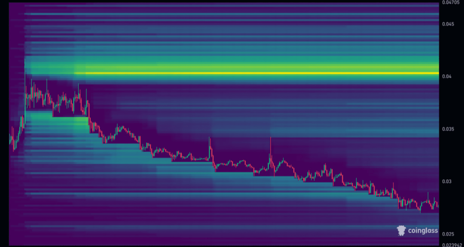 📊 Sur le graphique, un puissant niveau de liquidité est visible autour de 0.04$