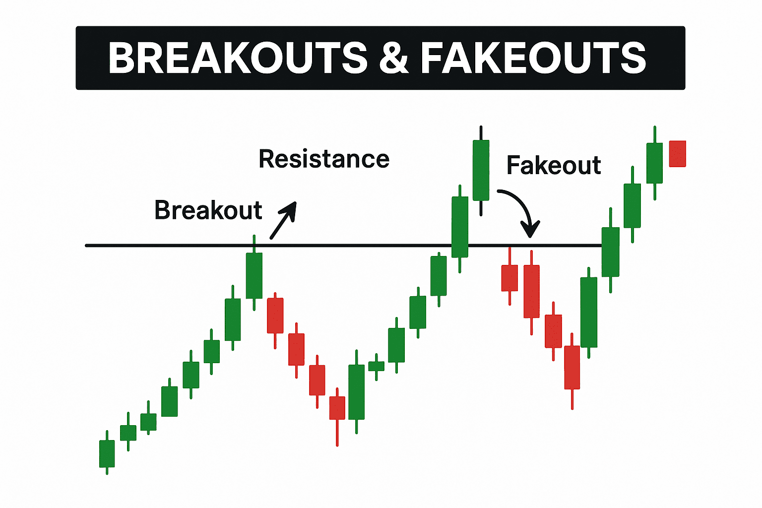 Faire la distinction entre les deux nécessite d'observer le comportement, pas seulement le prix. Un breakout soutenu par un véritable momentum montre une continuité : des mouvements impulsifs nets, des retraits ordonnés, et un volume en hausse progressive. Un fakeout laisse souvent le chaos derrière : des bougies tordues, des mouvements erratiques, et un rejet immédiat. En d'autres termes, un breakout montre un engagement ; un fakeout révèle une hésitation.