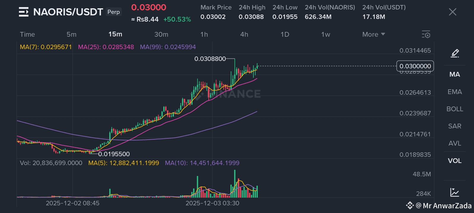 $NAORIS just delivered a solid +50% rally, driven by strong high-volatility inflows. The chart now shows firm support at 0.0282, while resistance sits at 0.0314.