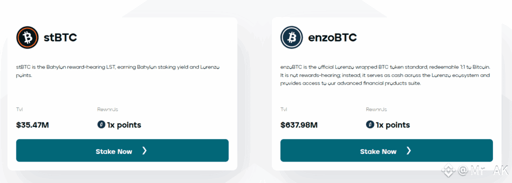 • stBTC: Babylon reward-bearing LST for staking, earns Babylon yield and Lorenzo points. TVL ~$35.47M.