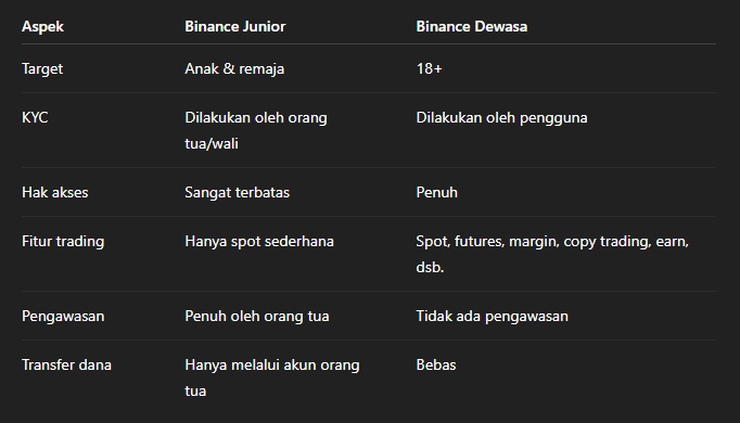 🔹 Binance Junior = version spéciale de Binance pour les enfants et les adolescents,