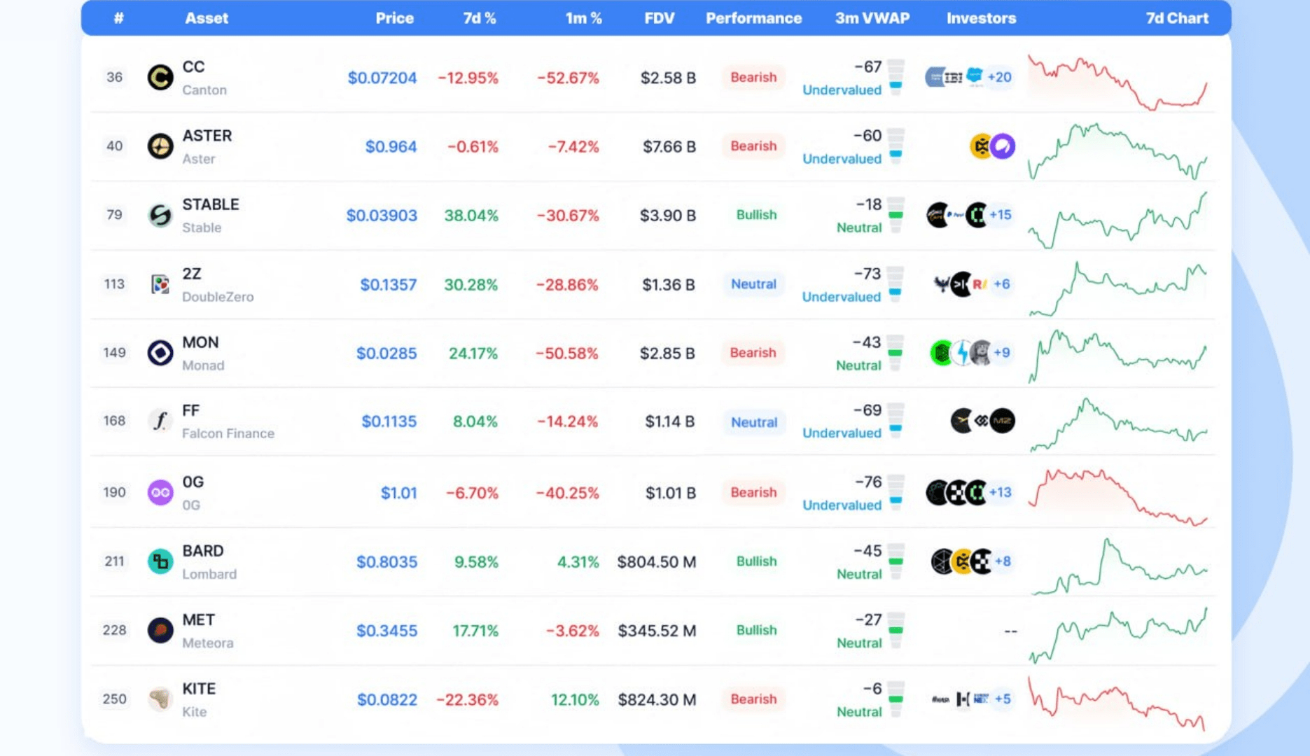 Alors que nous analysons les principaux tokens lancés cet automne, leur VWAP sur 3 mois raconte une histoire convaincante de divergence, d'opportunité et de sentiment de marché. Ci-dessous, nous décomposons les performers remarquables et ce que leur VWAP suggère sur leur trajectoire actuelle.