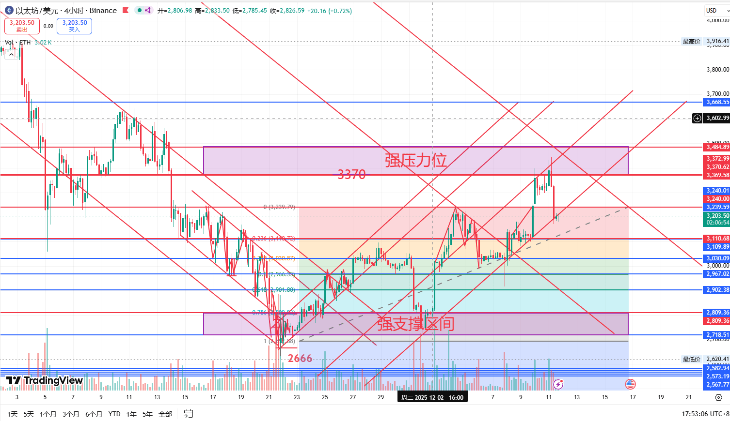 ETH : Sous l'emprise de la moyenne mobile à 60 jours, cette moyenne a été à plusieurs reprises une résistance clé pour les rebonds, après que les avantages macroéconomiques se soient estompés, la pression technique s'est rapidement transformée en baisse réelle, n'a pas réussi à se stabiliser au-dessus de 3400.