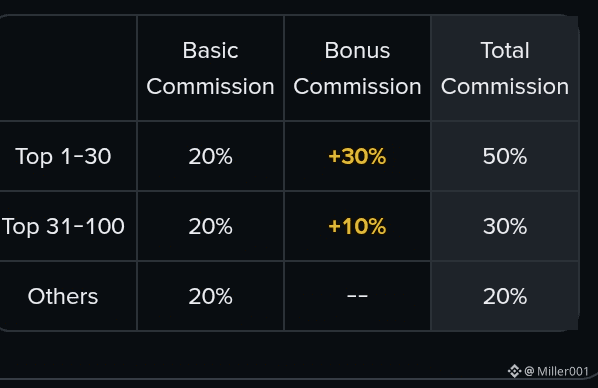 Binance offers a structured commission system for eligible creators, combining a basic commission plus a weekly bonus commission based on performance rankings.