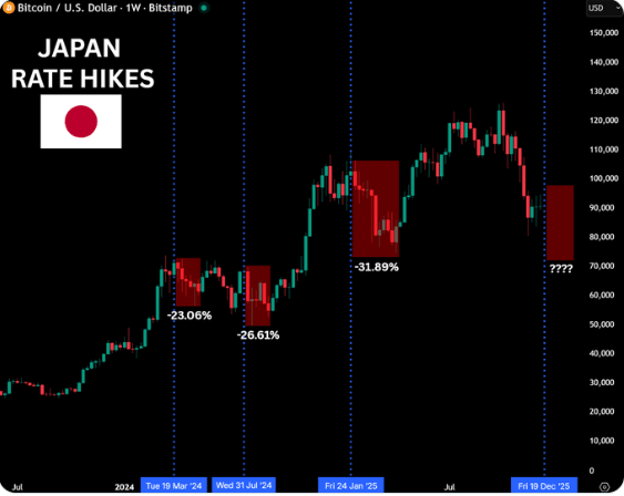 Chaque augmentation des taux de la BoJ → Bitcoin chute de plus de 20%