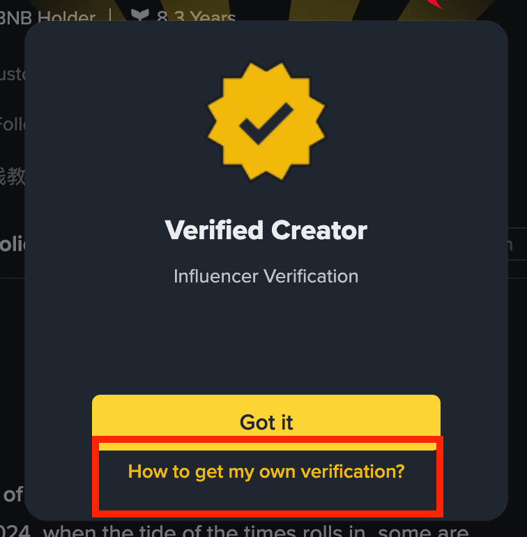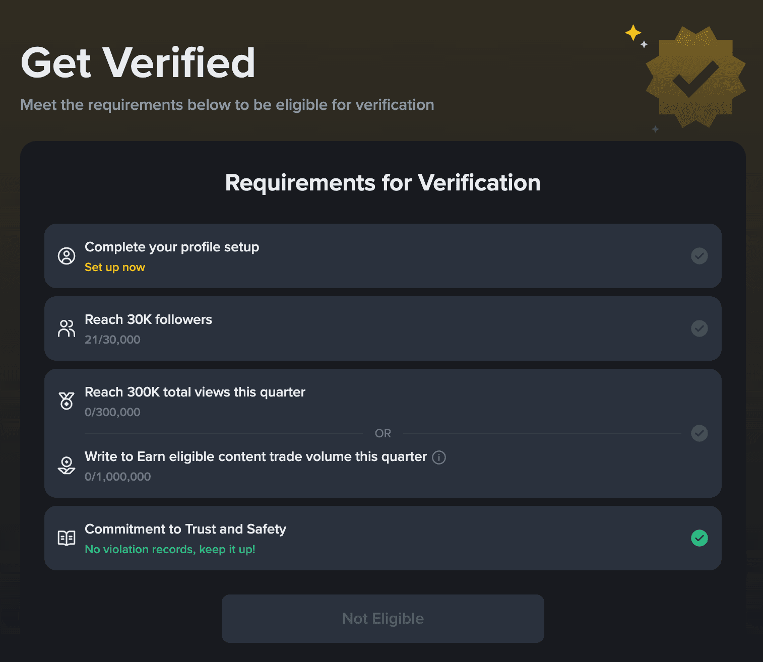 Démarquez-vous comme authentique et digne de confiance avec un badge de vérification Binance Square.