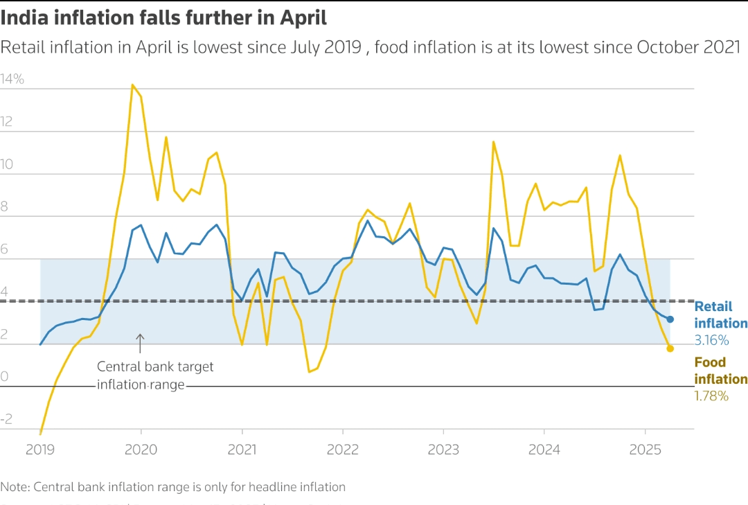 â L'inflation reste faible : le CPI est bien en dessous de la fourchette cible de la RBI, ce qui pourrait soutenir des baisses futures des taux d'intĂ©rĂȘt ou une politique monĂ©taire accommodante.