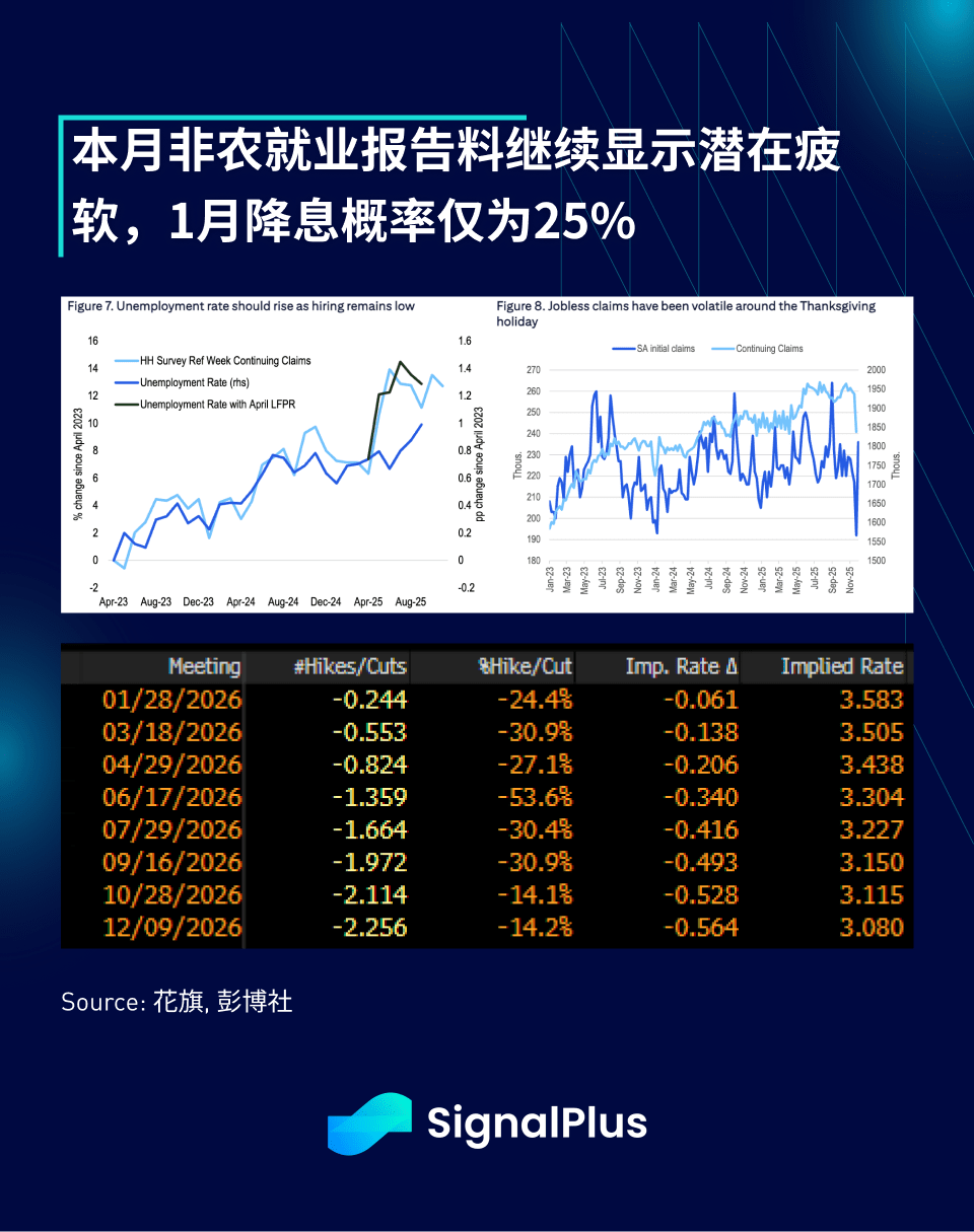 De plus, les rendements à long terme font face à une pression à la hausse, car Hasiht pourrait être nommé président de la Réserve fédérale, sa position en faveur d'une politique accommodante annulant l'effet accommodant récent de la Réserve fédérale sur les risques de baisse de l'emploi. Bien que le rapport sur l'emploi non agricole de cette semaine puisse montrer une augmentation du taux de chômage, le marché évalue actuellement la probabilité d'une baisse des taux en janvier à seulement environ 25 %, et les attentes de baisse des taux pour l'année 2026 restent légèrement supérieures à 2 fois.